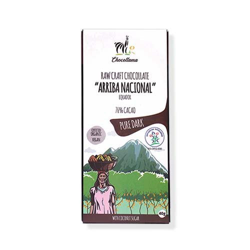 Sastav: organski sirovi kakao buter Arriba Nacional, organski sirovi kakao prah Arriba Nacional, organski kokosov šećer, prirodna aroma vanile, kakao delovi 76%.