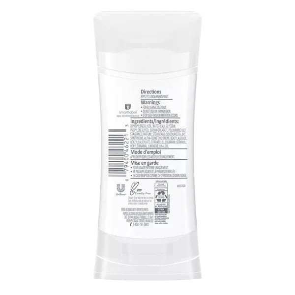 Enriched with ¼ moisturizers, this gentle, non-irritating deodorant without aluminum works to give you soft, smooth underarms by caring for your skin. In addition to underarm care, Dove 0% aluminum deodorant provides effective odor protection. Designed to protect your underarms from odor for up to 48-hours, one application of this 0% alcohol (ethanol) deodorant formula will help you get on with your day worry free.