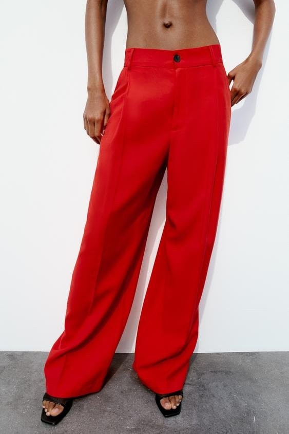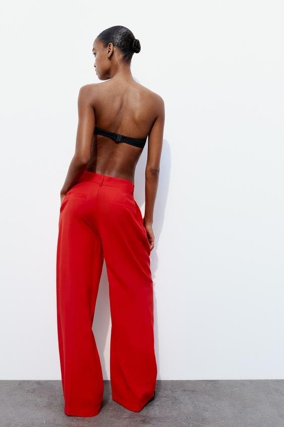 Pantalone visokog struka s gajkama. Bočni džepovi i zadnji paspulirani džepovi. Ušici napred. Kopčanje napred rajsferšlusom i dugmetom.